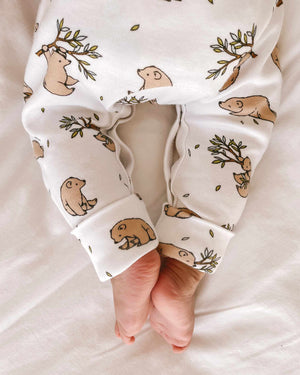 Crafted from our signature ultra soft GOTS organic cotton. This classic fit bear cub baby romper will be sure to keep you little one feeling comfy and looking cute day and night. It features poppers at the neck and around the legs for simple changing.