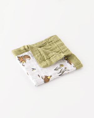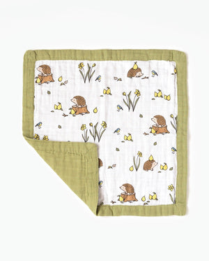 This cotton muslin security blanket is made from 2 layers of the finest organic cotton muslin. On one side is our beautifully illustrated woodland hedgehog design - on the other a neutral mossy green. This baby comforter is sure to soothe and calm your little one in those times of need.
