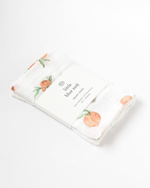 Care for your little one with these cute peach patterned muslin squares. Our beautifully illustrated little cloths are made with only the finest organic cotton muslin, meaning they're luxuriously softer on your baby's tender skin.